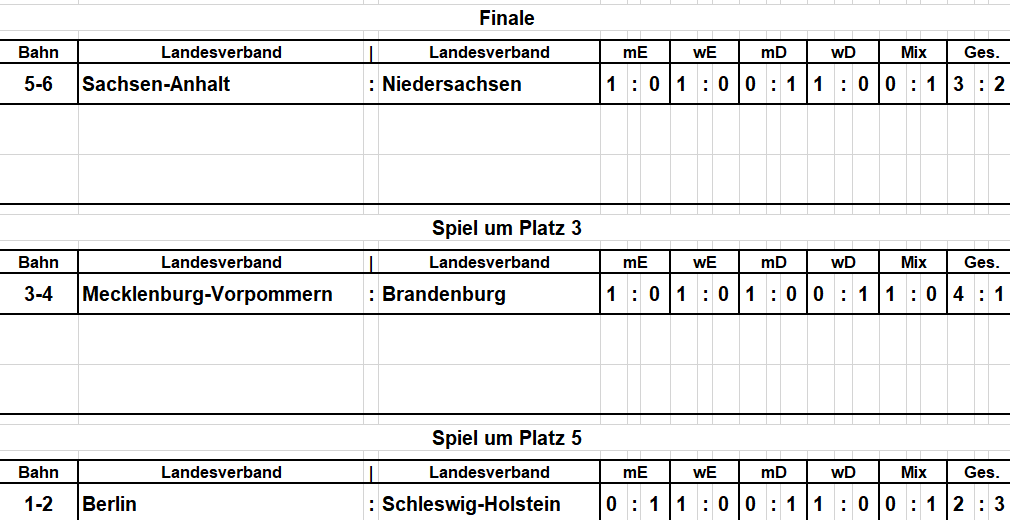 Die Ergebnisse aus Viertel- und Halbfinale sowie alle Einzelergebnisse findet man hier.